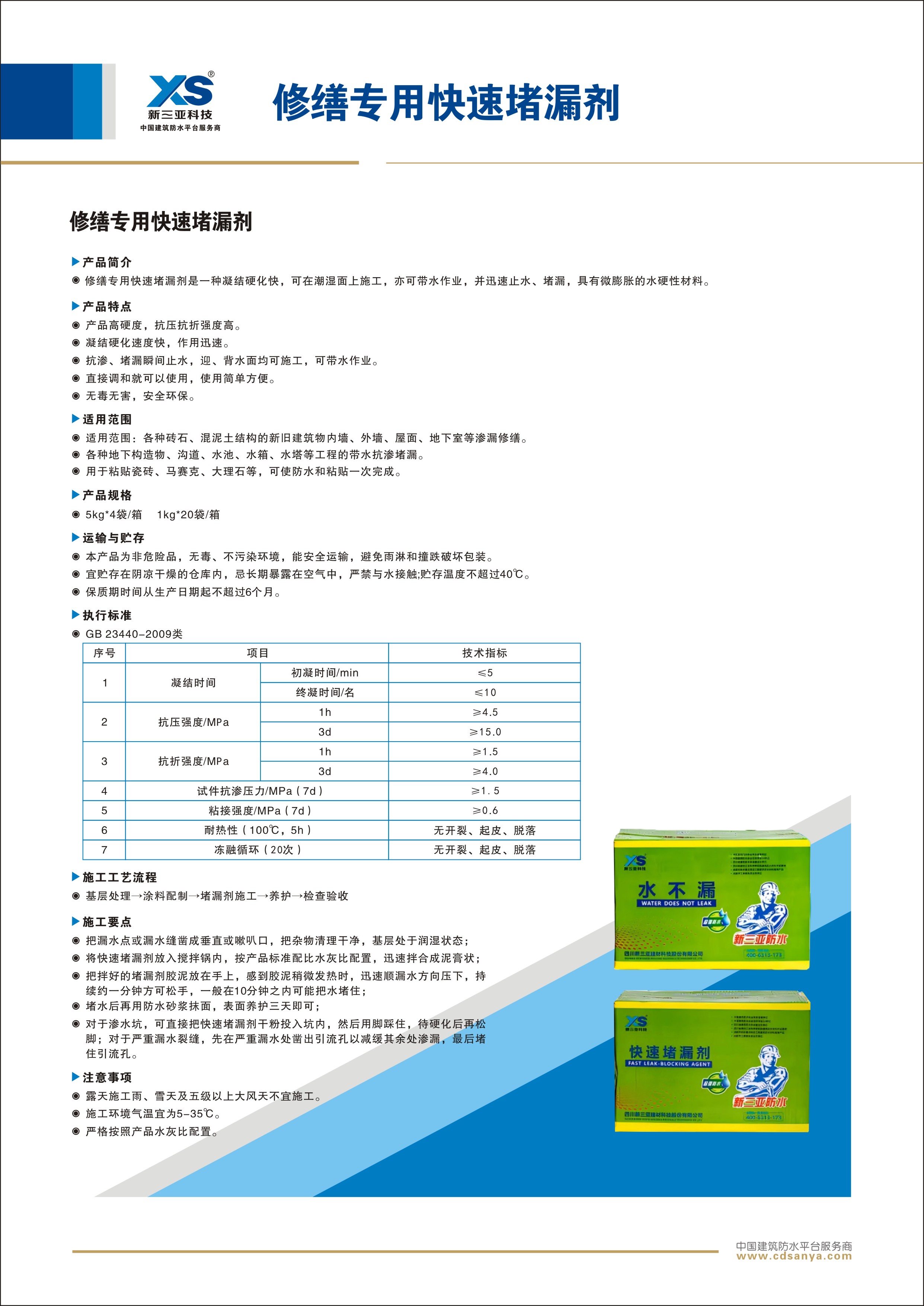 規(guī)格:水不漏(速凝型)