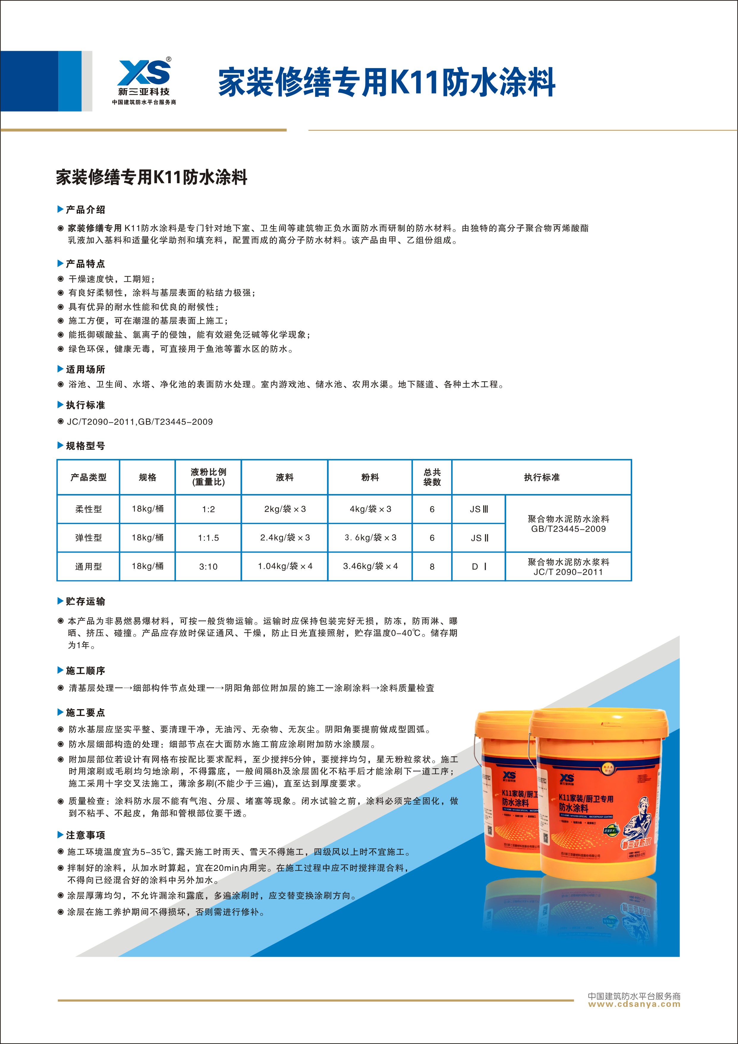 家裝修繕專用K11防水涂料是專門針對地下室、衛(wèi)生間等建筑物正負(fù)水面防水而研制的防水材料。由獨特的高分子聚合物丙烯酸酯乳液加入基料和適量化學(xué)助劑和填充料,配置而成的高分子防水材料。該產(chǎn)品由甲、乙組份組成。